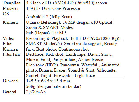 Berikut adalah spesifikasi selengkapnya.